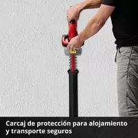 El cortasetos inalambrico GC-CH 1846 Li Kit es un dispositivo de alto rendimiento que, gracias a su ligero peso y práctico tamaño, permite un mantenimiento particularmente cómodo y sin conexión a la red eléctrica de los setos, arbustos y malezas en grandes parcelas de tierra y en huertas. Con el nuevo sistema de baterías Power X-Change de Einhell, el cortasetos está provisto de una batería de 18 V con 2,0 Ah para tareas de trabajo extendidas. El GC-CH 1846 Li Kit tiene un indicador de nivel de batería con tres LED, que muestra el estado actual de carga de un vistazo. Las baterías también se pueden utilizar en todos los dispositivos de la familia Power X-Change. La entrega incluye un cargador rápido adicional. El interruptor de seguridad bimanual integrado detiene las cuchillas en menos de 1 segundo si se libera un interruptor. Las cuchillas están protegidas por una cubierta de cuchilla de aluminio. La protección contra impactos está provista de un orificio para montaje en la pared, por lo que el cortasetos se guarda en un instante para ahorrar espacio. El engranaje metálico ofrece una larga vida útil y las cuchillas de acero cortadas con láser y afiladas con diamante proporcionan unos resultados limpios. El GC-CH 1846 Li Kit se puede transportar o guardar de forma segura y conveniente en una bolsa resistente.
